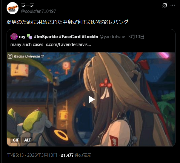 日本ソシャゲ男児「ゼンゼロは弱男のために用意された中身が何もない客寄せパンダが多い」