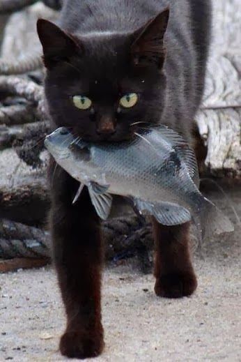【どうぶつ画像】クロがクロを咥えてる、顔と体のバランスが・・・、クッション持参でジャンプ