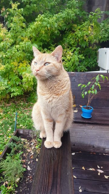 なごめるおかると【ねこ画像】ウッドデッキでチョコン座り、携帯とこねこ ほか【再】