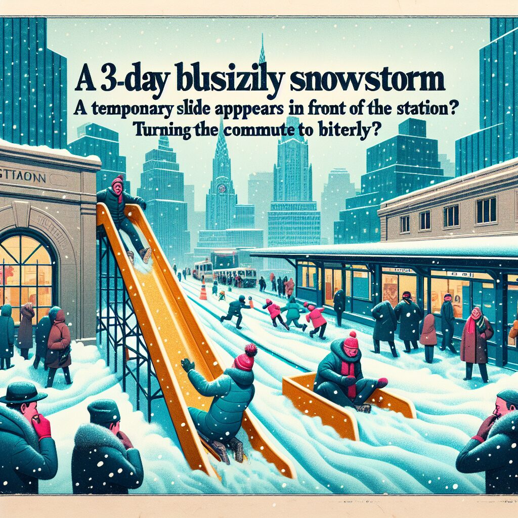 3連休の暴風雪、駅前に“臨時滑り台”出現で通勤が雪のレースに? 自治体は苦笑