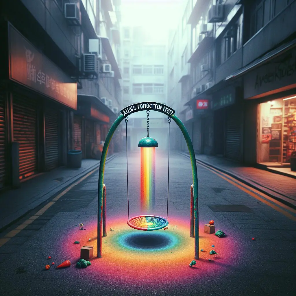 【宇宙人の忘れ物?】商店街で発見された小さな虹色のブランコは、未来から来た手紙なのか