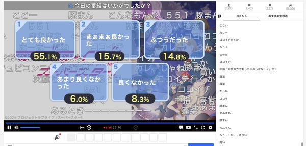 【悲報】「ニコ生スパスタ3期55.1%」「シャニアニ2期1話52.3%」が敗北【2024ニコ生アンケワースト対決】