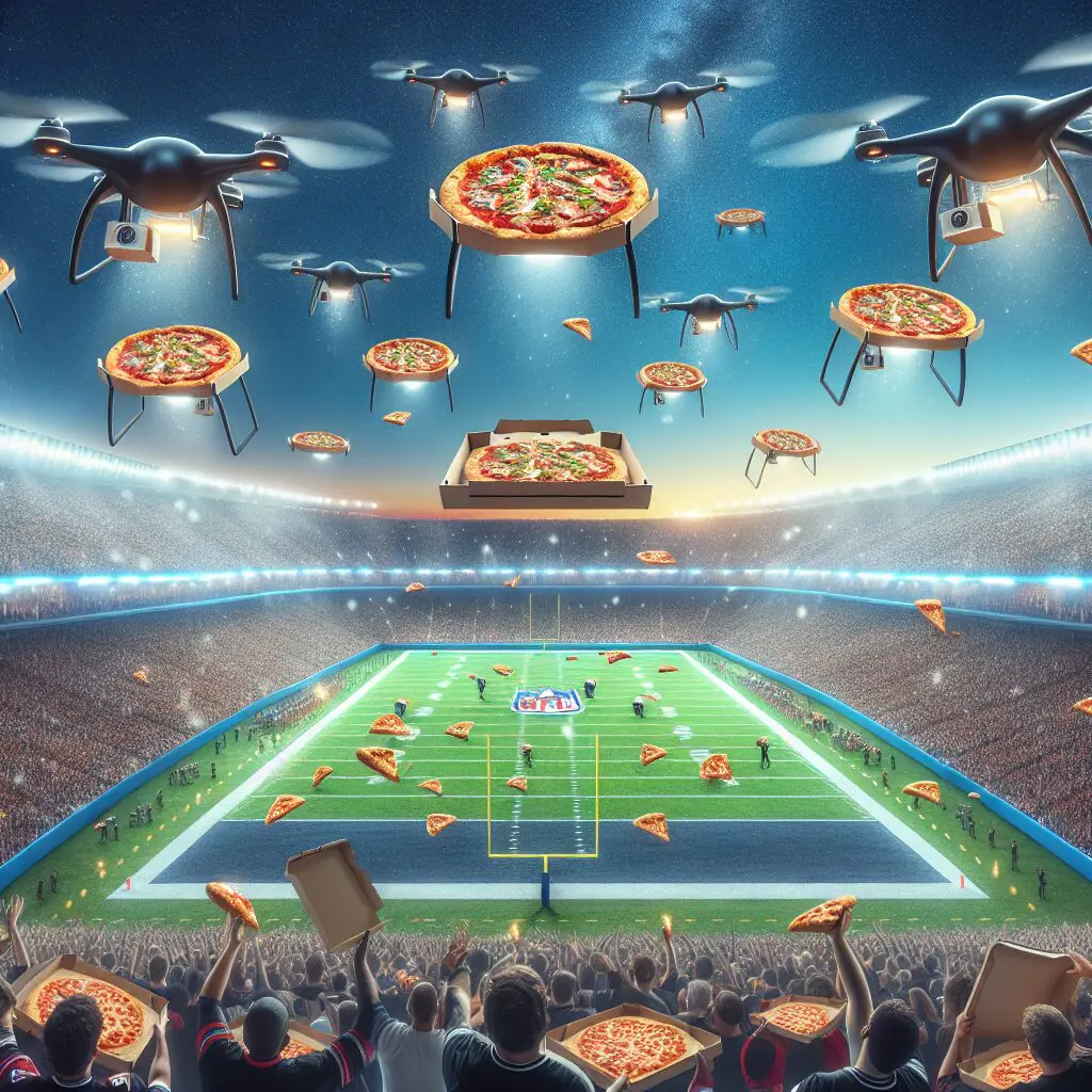 スーパーボウル会場で配達ドローンが「ピザ渋滞」発生? 観客席に空飛ぶ注文ミス、歓喜と混乱のハーフタイム