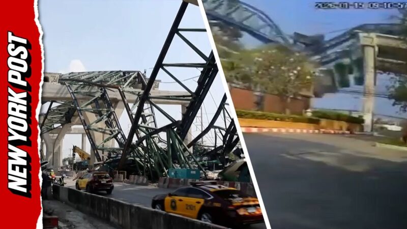 タイで電車の高架道路を工事中のクレーンが落下してしまい2人が死亡した!!