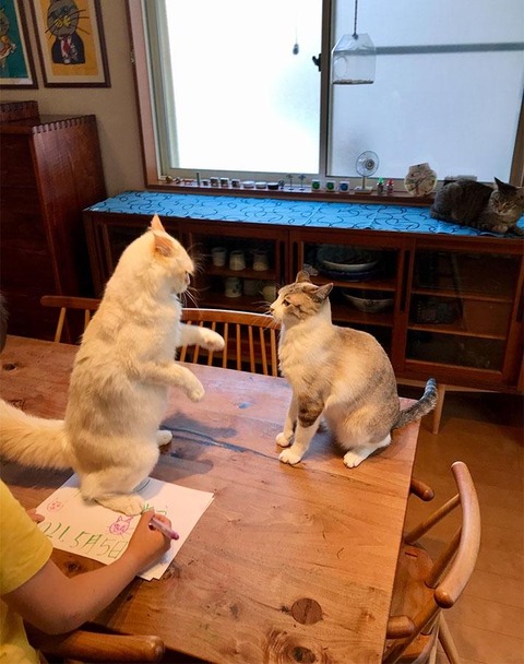 【どうぶつ画像】テーブルの上でねこのけんか、だいたい一致、五月人形とねこ ほか【再】