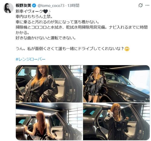 【芸能】ともちん、『車内土禁』660万円超の高級愛車を公開!