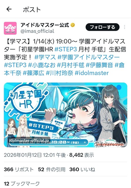 【速報】学マス、月村手毬STEP3実装決定!燐羽の3Dモデルをチラ見せ!